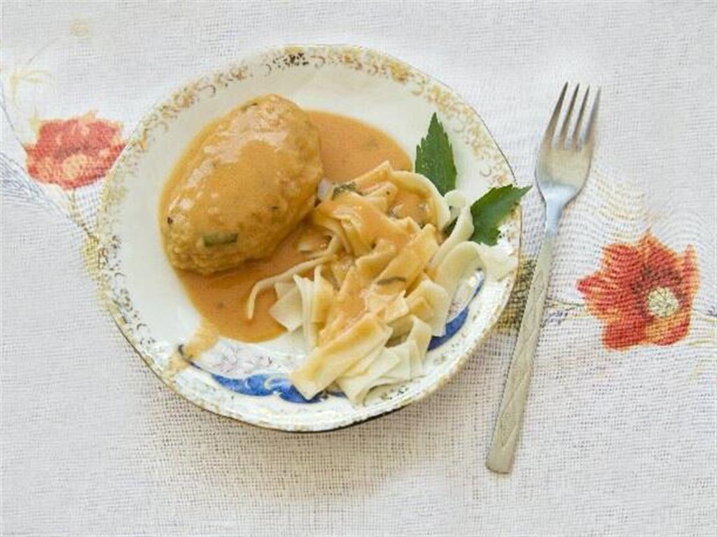 Mięso ze skrzydełek obrać, zmielić razem z grzybami, dodać jajko, przyprawić do smaku.