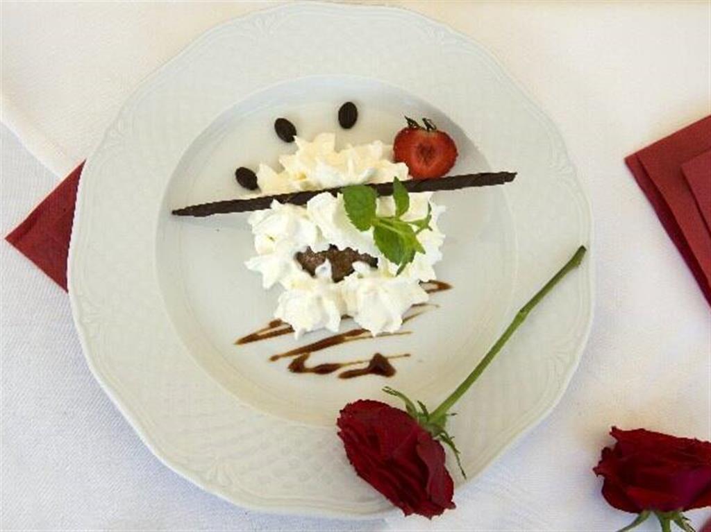 Delikaty i zdrowy deser. Jabłko zapiekane jest z dodatkiem przypraw korzennych i podawane z lodami i bitą śmietaną.