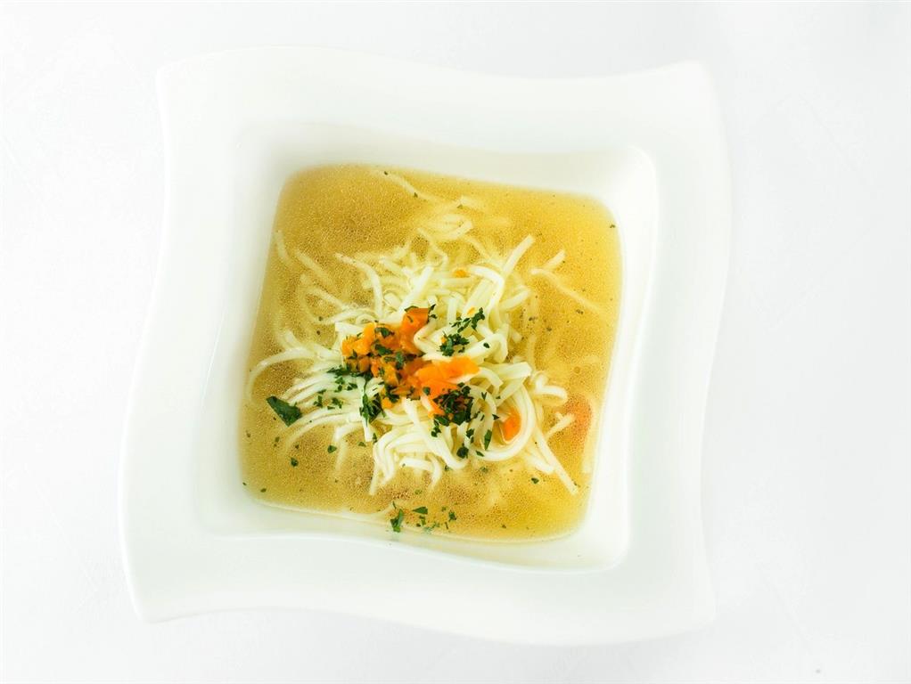 Wyczyszczoną kaczkę z warzywami i przyprawami gotujemy na małym ogniu przez 2 godziny; odcedzamy. Makaron gotujemy i odcedzamy. Wątróbkę drobno kroimy, dodajemy do niej kaszę mannę, majeranek, sól, pieprz do smaku. Z tak przygotowanej masy formujemy małe kluseczki, które potem wrzucamy do gotującego się rosołu. Przed podaniem dodajemy makaron i natkę lubczyku.