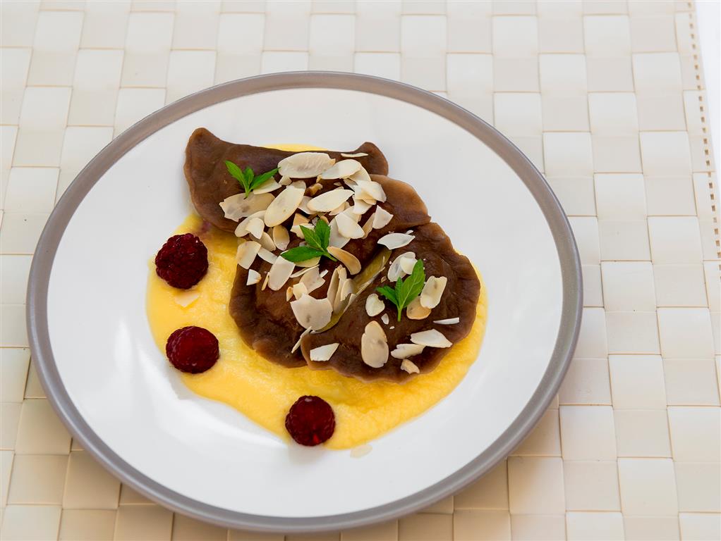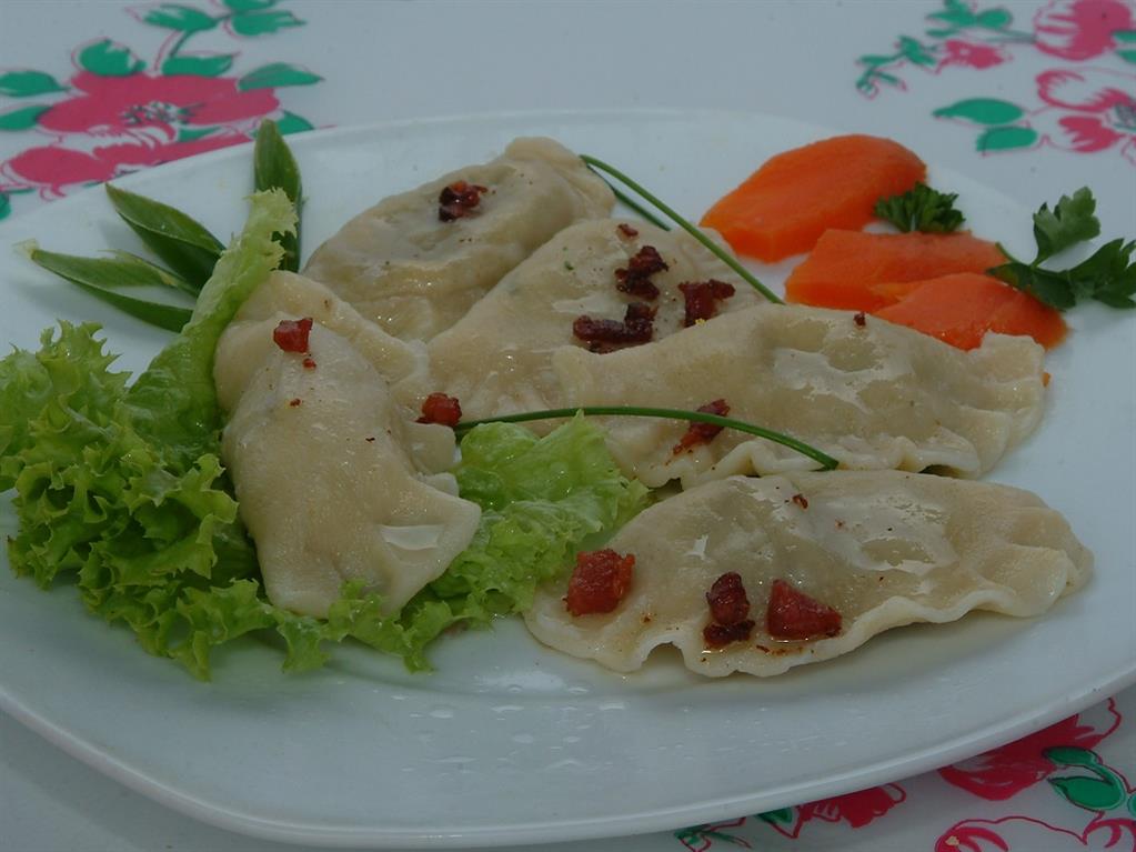 Pierogi z mięsem serwuje Karczma Rogata znajdująca się na Szlaku Kulinarnym Śląskie Smaki.