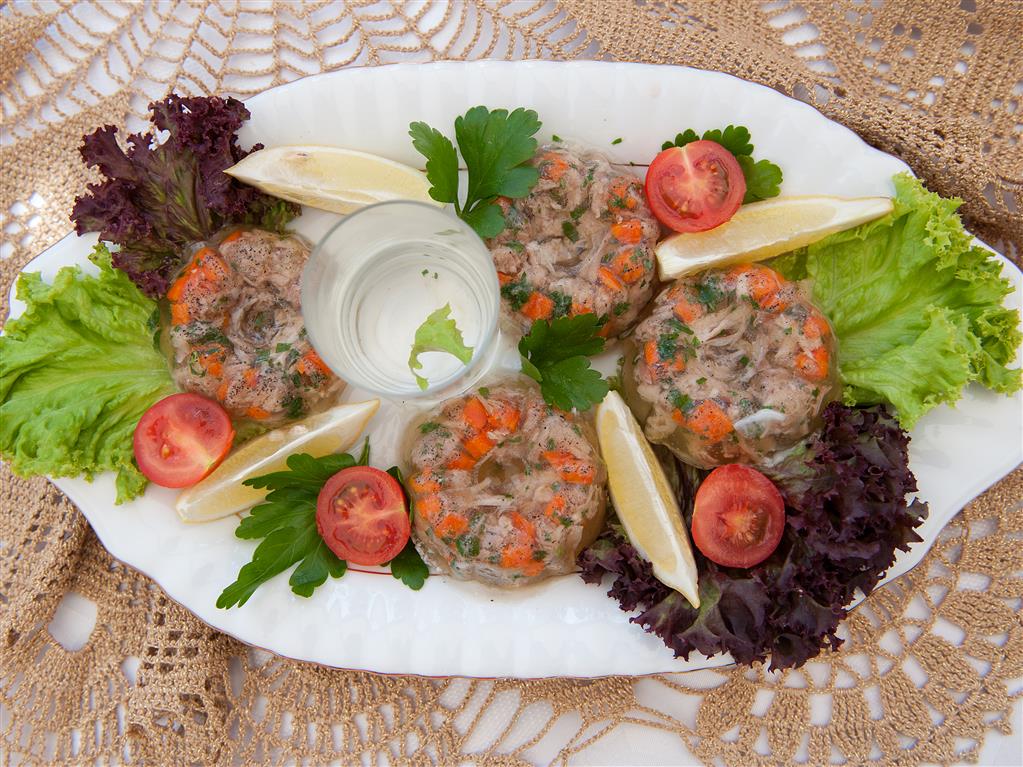 Zulc czyli galaretka z nóżek wieprzowych, podana z cebulką, octem i chlebem. Przystawka uwielbiana nie tylko na terenie Śląska Cieszyńskiego.