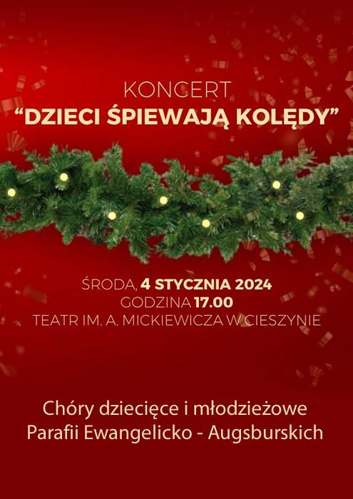 Towarzystwo Ewangelickie im. ks. Franciszka Michejdy oraz Liceum Ogólnokształcące Towarzystwa Ewangelickiego w Cieszynie zaprasza na koncert "Dzieci śpiewają kolędy".