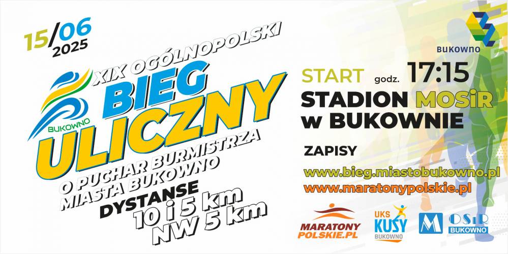 Zapisy : https://www.miastobukowno.pl/mieszkaniec/kultura-i-sport/ogolnopolski-bieg-uliczny-o-puchar-burmistrza-miasta-bukowno/xviii-ogolnopolski-bieg-uliczny-o-puchar-burmistrza-miasta-bukowno-2024