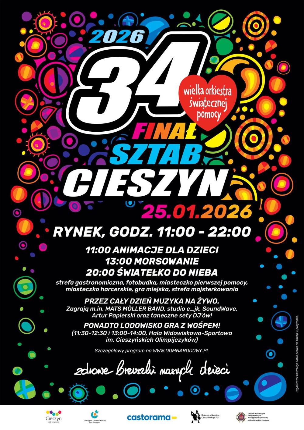 Cieszyński Ośrodek Kultury "Dom Narodowy" - COK wspólnie z Cieszyńskim Sztabem Finału Wielkiej Orkiestry Świątecznej Pomocy zachęcają do udziału w 34. Finale Wielkiej Orkiestry Świątecznej Pomocy w Cieszynie!