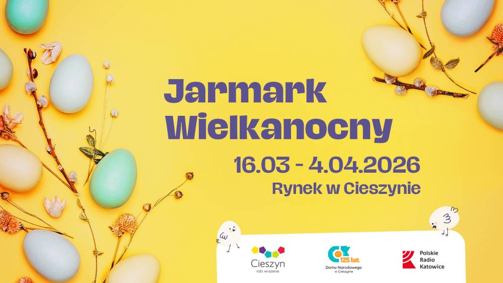 Cieszyński Ośrodek Kultury "Dom Narodowy" i miasto Cieszyn zapraszają na Jarmark Wielkanocny! Świąteczne zakupy na cieszyńskim rynku będzie można zrobić podczas kiermaszu, który potrwa od 16 marca do 4 kwietnia, codziennie w godzinach 10:00-18:00. Dodatkowo zapraszamy na Wiosenny Jarmark Rękodzieła, w weekendy 21-22 oraz 28-29 marca. Ponadto nie zabraknie foodtracków i najróżniejszych pyszności, które będą dostępne 20-22 oraz 27-29 marca. Zachęcamy również do zapoznania się z programem wydarzeń dodatkowych (szczegóły poniżej).
