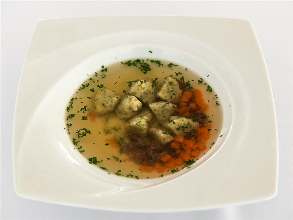 Warzywa obrać, opłukać. Kurę umyć. Podzielić na 4 kawałki. Do gotującej się wody dodać mięso i warzywa. Gotować na małym ogniu, bez przykrycia. Odcedzić, usunąć nadmiar tłuszczu. Przygotować kluski z grysiku – wymieszać dobrze, dodać trochę soli, lać na gotującą wodę, przelać zimną wodą, dodać do rosołu.