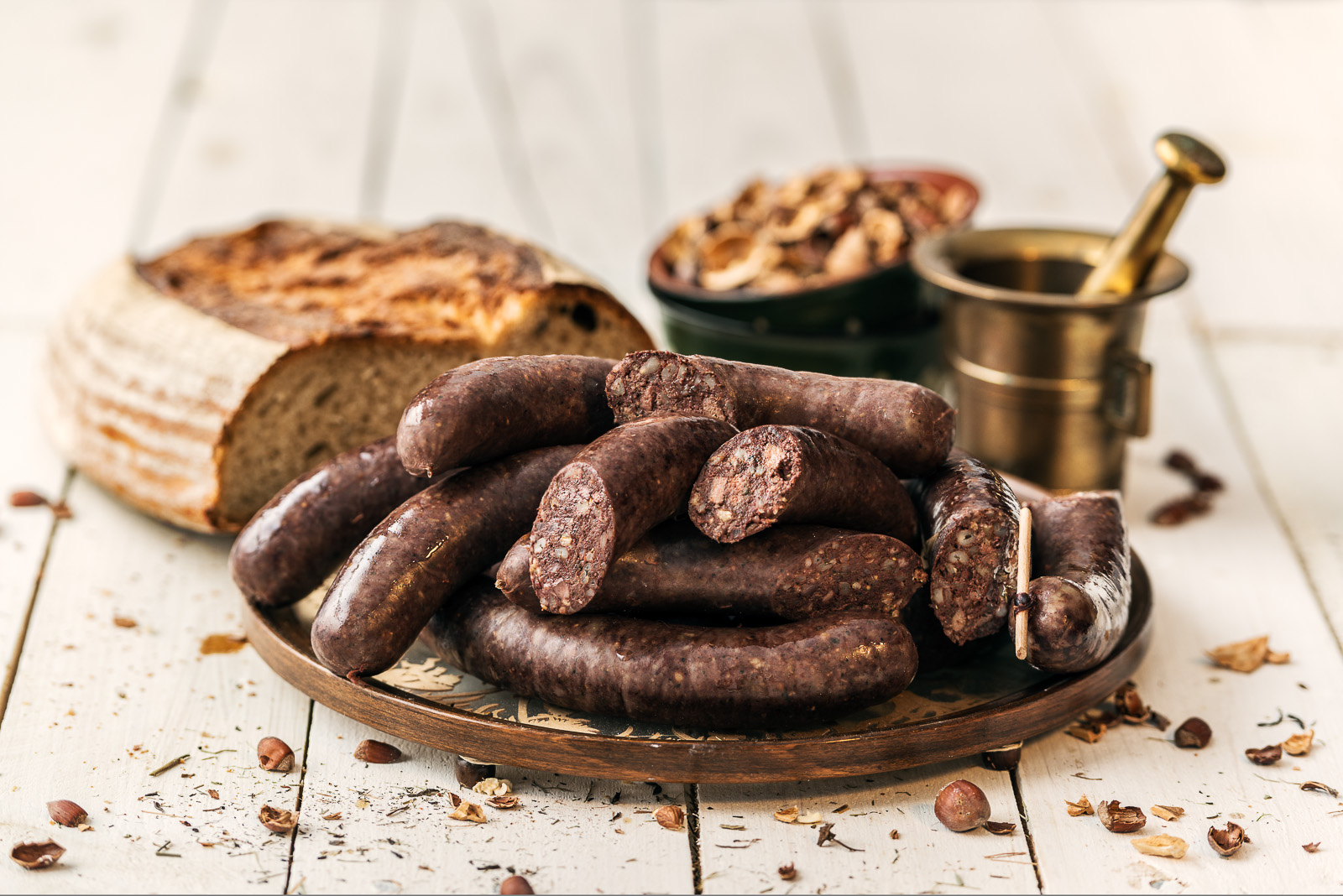 Zapach i smak charakterystyczne dla wędliny podrobowej parzonej z dodatkiem krwi i kaszy gryczanej; wyczuwalne przyprawy