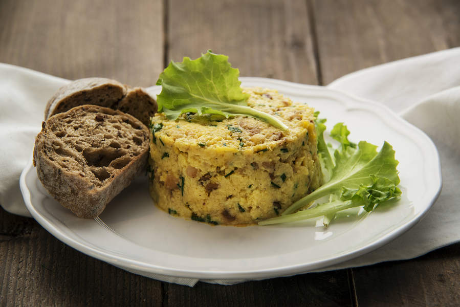 Jajecznica jest gęsta, nie mogła się rozlać na kromce chleba (tak była podawana).