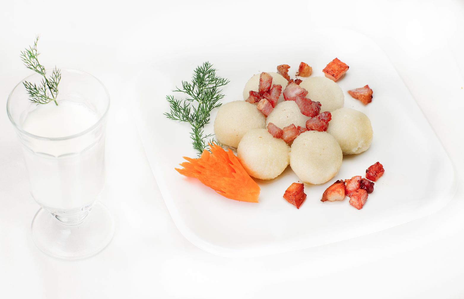 Najbardziej rozpowszechnioną mączną potrawą były gałuszki, czyli kluski: strzapate, fusate, kładzione, chybane, ścikane, biołe, szulane, z dziurkóm, które spotykamy na całym omawianym terenie. Nazwy te pochodzą od techniki ich wykonywania. Najczęściej do mąki wbijano jajko, mieszano z wodą, solono i wrzucano na wrzątek. Po ugotowaniu polewano je topioną słoniną z dużymi skwarkami. Na święta gotowano gałuszki na parze. Wykonywano je z mąki pszenicznej z dodatkiem jajka i napełniano powidłami śliwkowymi. Ugotowane w garnku na parze polewano masłem, posypywano cukrem, a niekiedy szkórzycóm (cynamonem), co było wielkim tutejszym rarytasem. Ciekawostką jest, że gotowanie klusek kładzionych wchodziło w skład tradycyjnych wróżb odprawianych w wigilię św. Andrzeja. Do środka gotowanych klusek wkładała dziewczyna karteczki z napisanymi imionami, a następnie wyjmowała karteczkę z kluski, która wypłynęła jako pierwsza na wierzch, i odczytywała imię przyszłego męża.