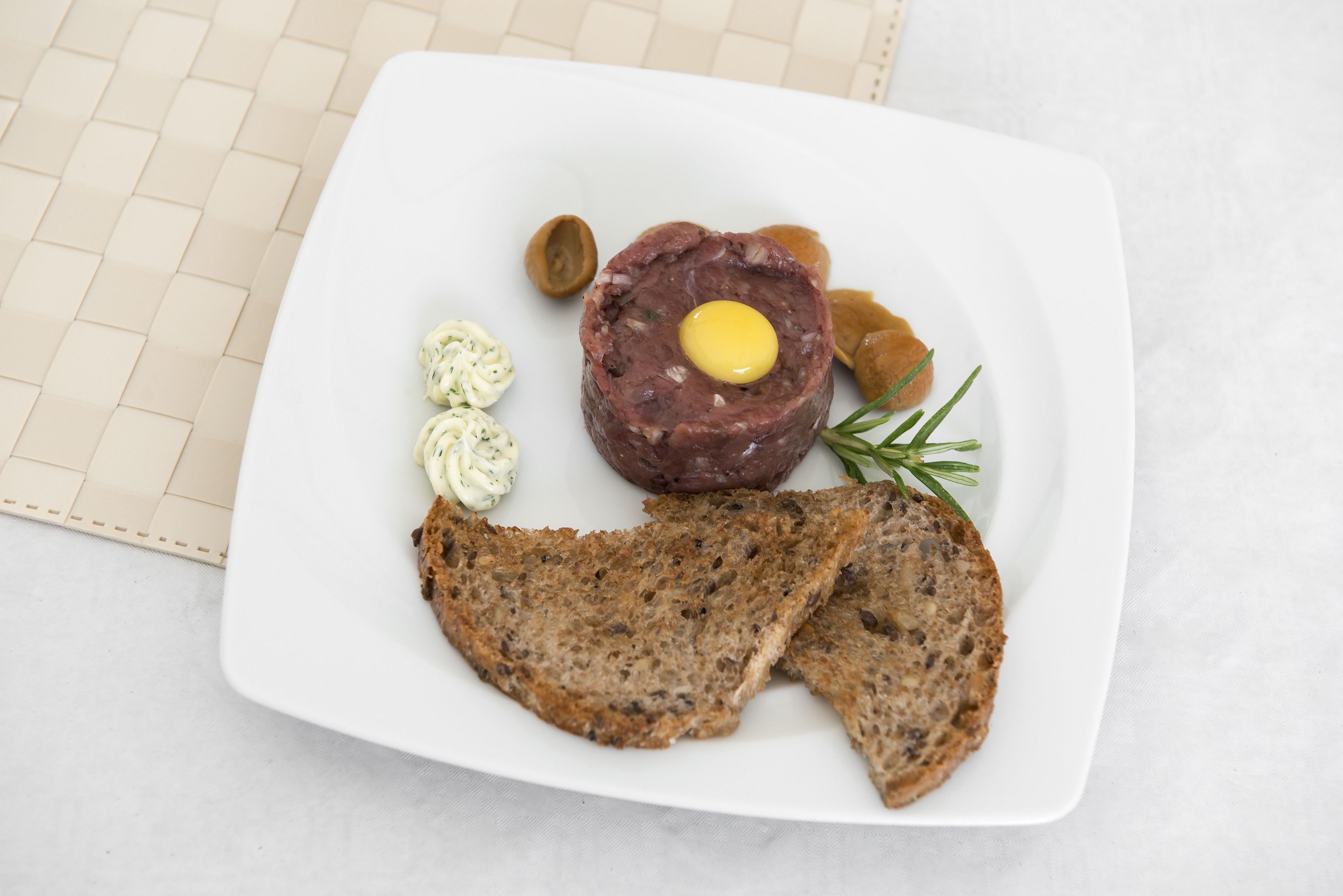 Podajemy z cebulką, ogórkiem kiszonym i grzybkami.