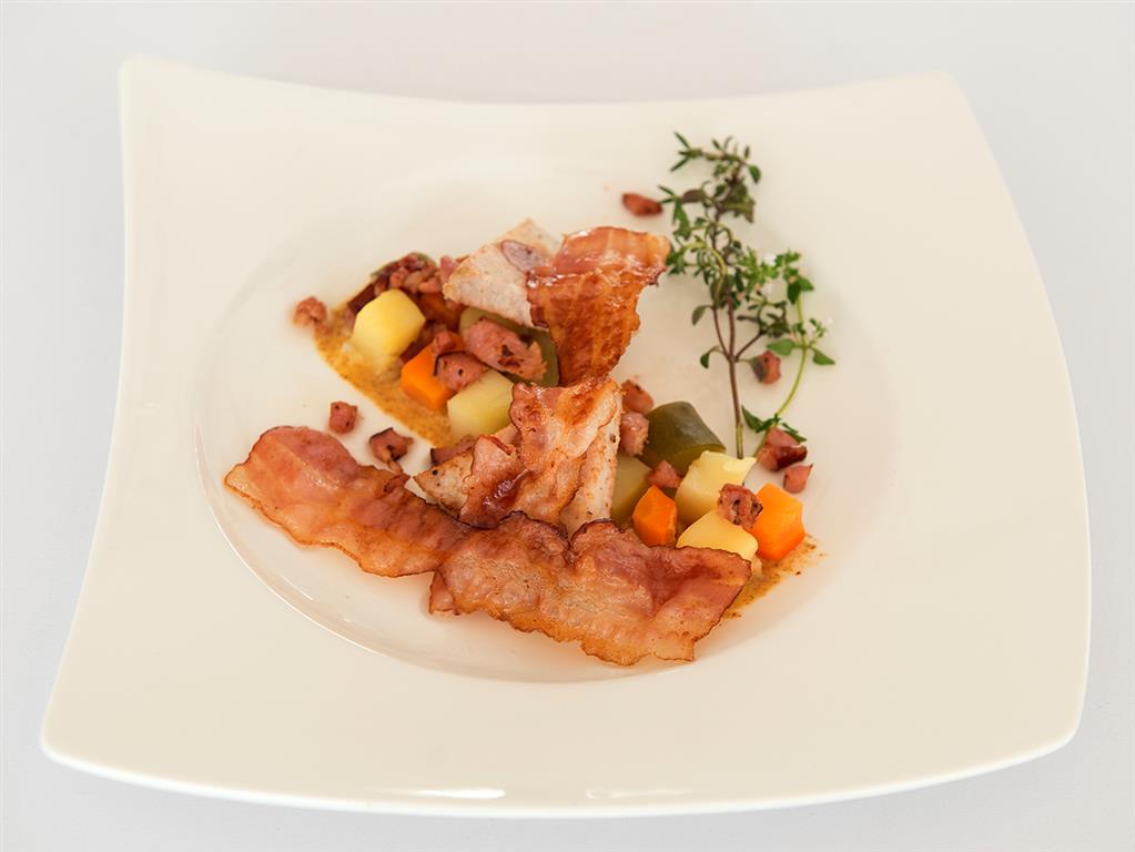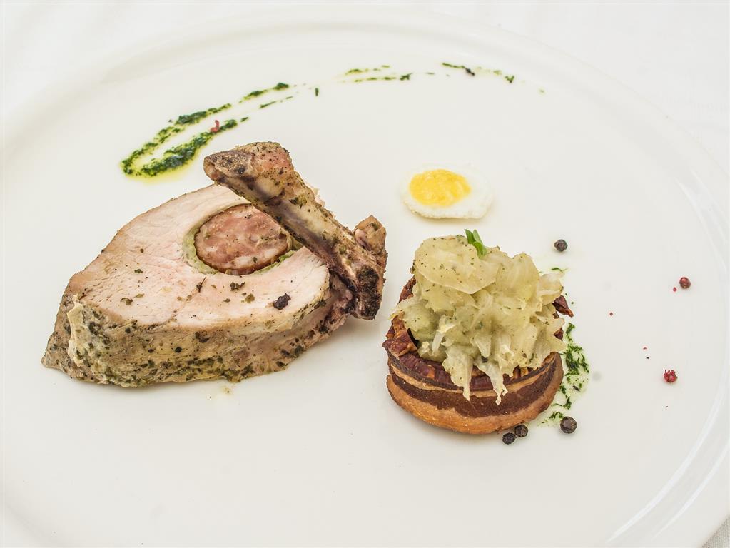W środku schabu bez kości nacinamy otwór, w który wsadzamy sparzone śliwki, nacieramy solą, przekładamy do brytfanny i obkładamy pozostałymi śliwkami. Całość oblewamy smalcem. Pieczemy, polewając sosem pozostałym z pieczenia i skrapiając wodą z parzenia śliwek. Po upieczeniu schabu sos i śliwki przecieramy przez sito. Następnie schab oprószamy mąką, zalewamy sosem, dodajemy miód, doprawiamy do smaku i chwilę dusimy.
