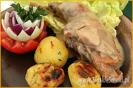 Ugotować wywar z suszonych ziół, dodać pieprz, sól, ocet. Po czym podzielić królika na kawałki i zapeklować w zaprawie. Po 24 godzinach wyciągnąć królika, odsączyć, natrzeć czosnkiem, dusić na maśle podlewając wodą około 1,5 godziny do miękkości. Na koniec wywar zabielić słodką, swojską śmietaną. Podawać z pieczonymi ziemniakami.