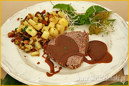 Mięso smakuje równie wybornie na zimo, podane z tartym chrzanem i sałatką z ziemniaków.