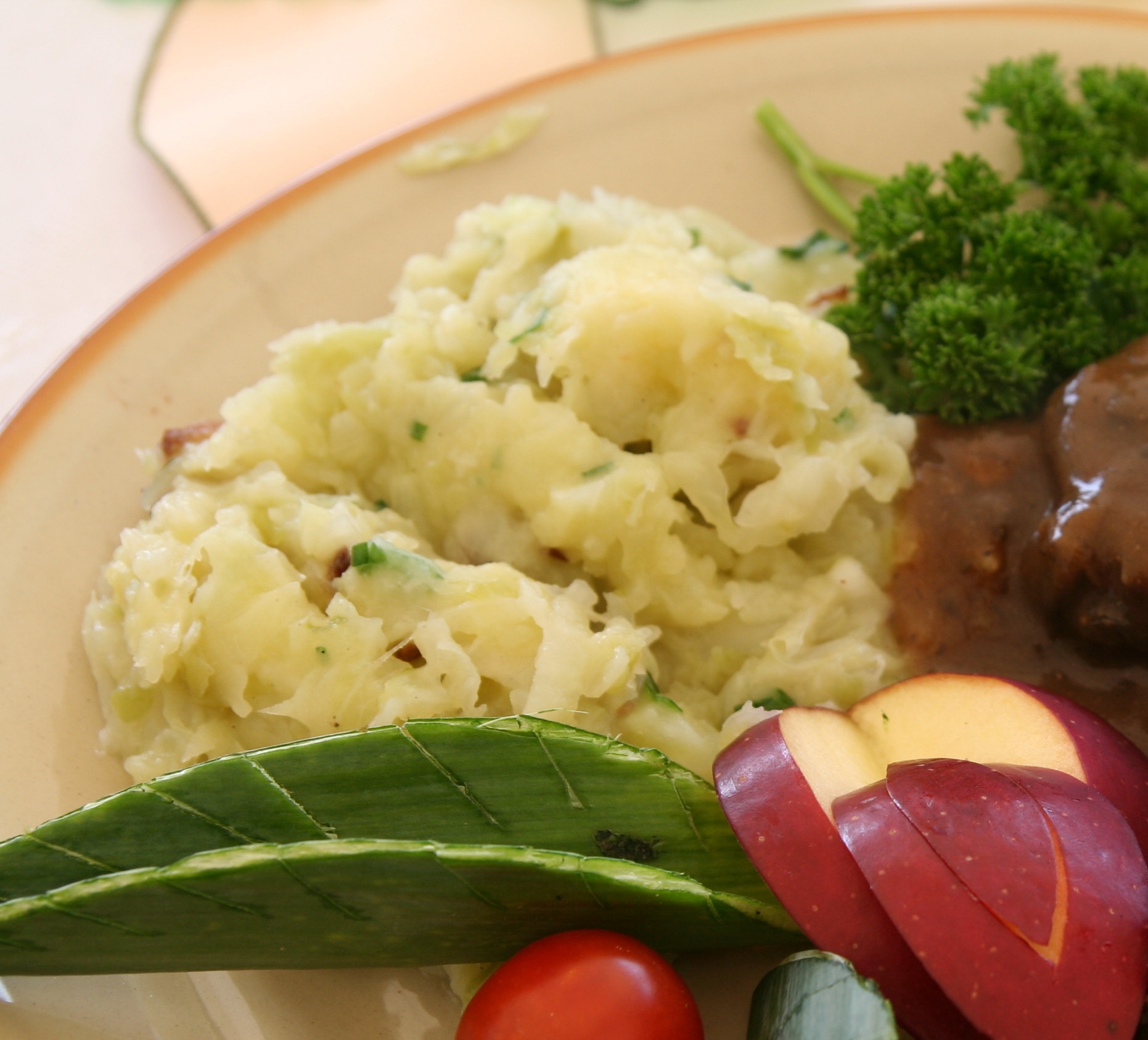 Białą kapustę poszatkować i ugotować. Następnie przygotować zasmażkę na słonince i połączyć z kapustą, dodając przyprawy. Kartofle obrać i ugotować, potem przegnieść i połączyć z kapustą. Dodać sól i pieprz do smaku.