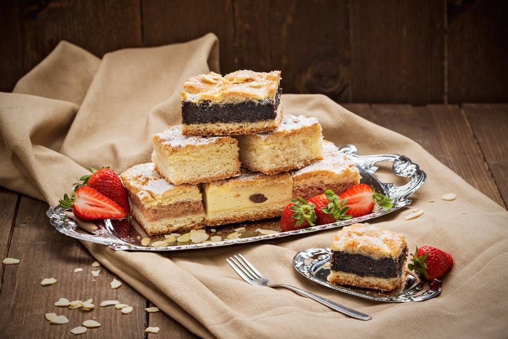 Mąkę przesiewamy przez sito. Z mleka i drożdży robimy rozczyn, który wlewamy do przesianej mąki. Jajka ubijamy z cukrem. Roztapiamy masło. Gdy rozczyn podwoi swoją objętość, dodajemy jajka z cukrem i wyrabiamy, dolewając roztopione masło. Wyrabiamy ciasto tak długo, aż przestanie się kleić do rąk, na końcu dodajemy sól. Oddzielnie wyrabiamy wszystkie składniki na posypkę. Na blachę układamy ciasto, na które dajemy posypkę. Pieczemy do zrumienienia.
