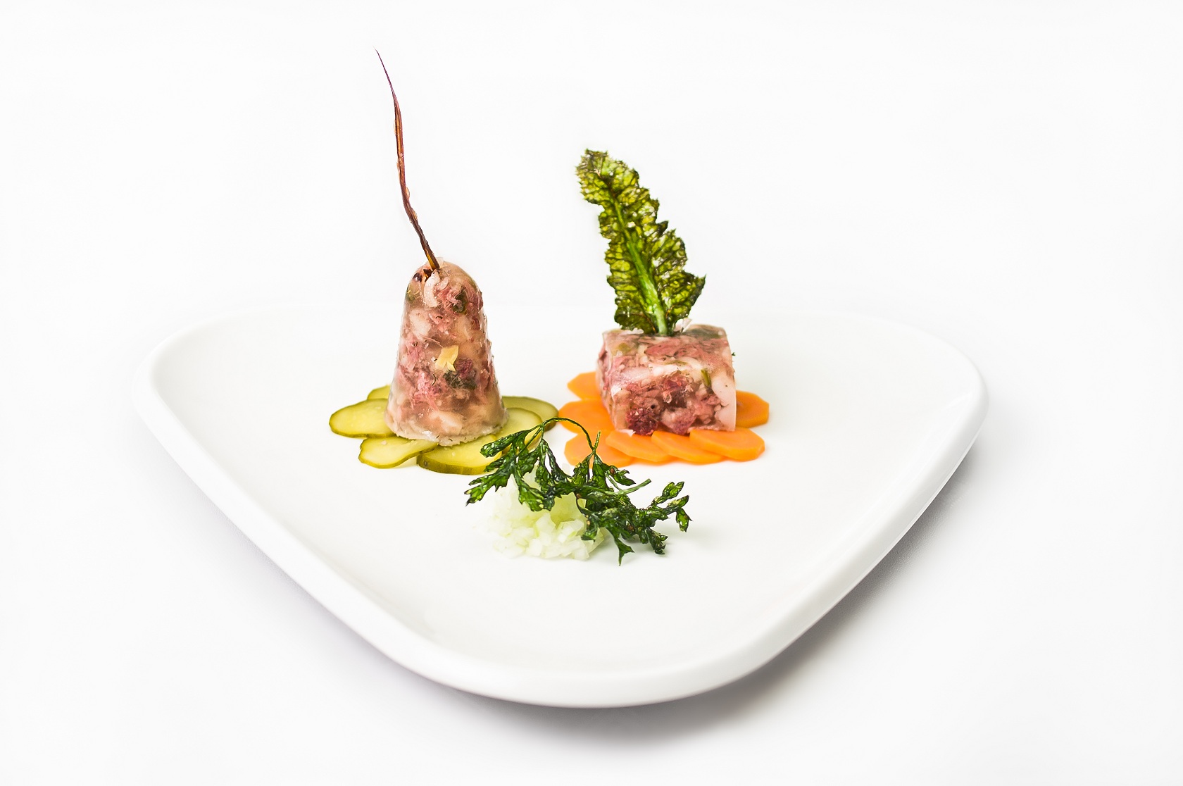 Opalone, umyte i oskrobane nóżki przerąbać na pół, z golonki wyciąć kość, wszystko włożyć do rondla. Zalać 2 litrami zimnej wody i gotować na małym ogniu 3−4 godziny, uzupełniając wodę. Na godzinę przed zakończeniem gotowania dodać włoszczyznę, cebulę z wbitym goździkiem oraz przyprawy. Gotować dalej do miękkości. Wywar odcedzić, przyprawić do smaku roztartym czosnkiem i octem. Ostudzone mięso obrać z kości, pokroić w kostkę, włożyć do wywaru i chwilę gotować, aby wywar się sklarował. Przygotować salaterki, wyłożyć plasterkami ugotowanej marchwi. Dokładnie wymieszać płynną galaretę, po czym rozlać ją do salaterek i ostudzić do zakrzepnięcia. Przed podaniem pokroić w cząstki, wyłożyć na półmisek obłożony listkami sałaty zielonej i posypać pokrojoną w kostkę cebulą skropioną octem.