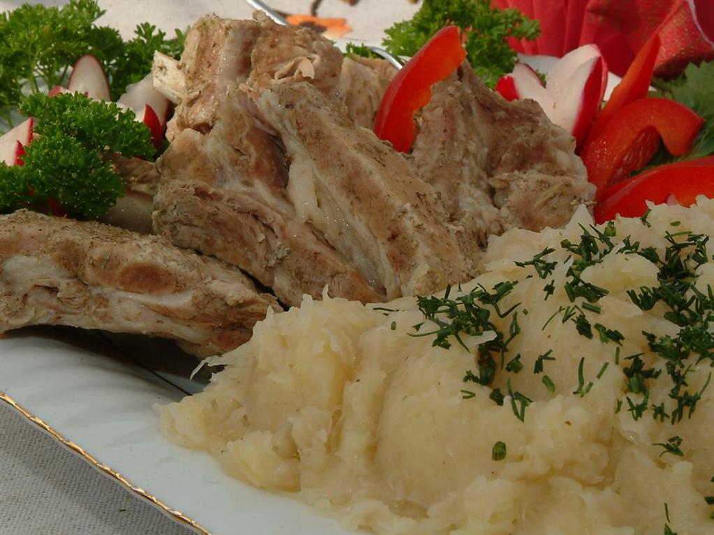 Pieczone żeberka podane na babraczce to danie obiadowe. Żeberka znane są w wszędzie, babaraczka jest jednak potrawą charakterystczną dla Śląska Cieszyńskiego. To bazujący na kapuście pyszny i energetyczny dodatek do mięs czy krupnioka.