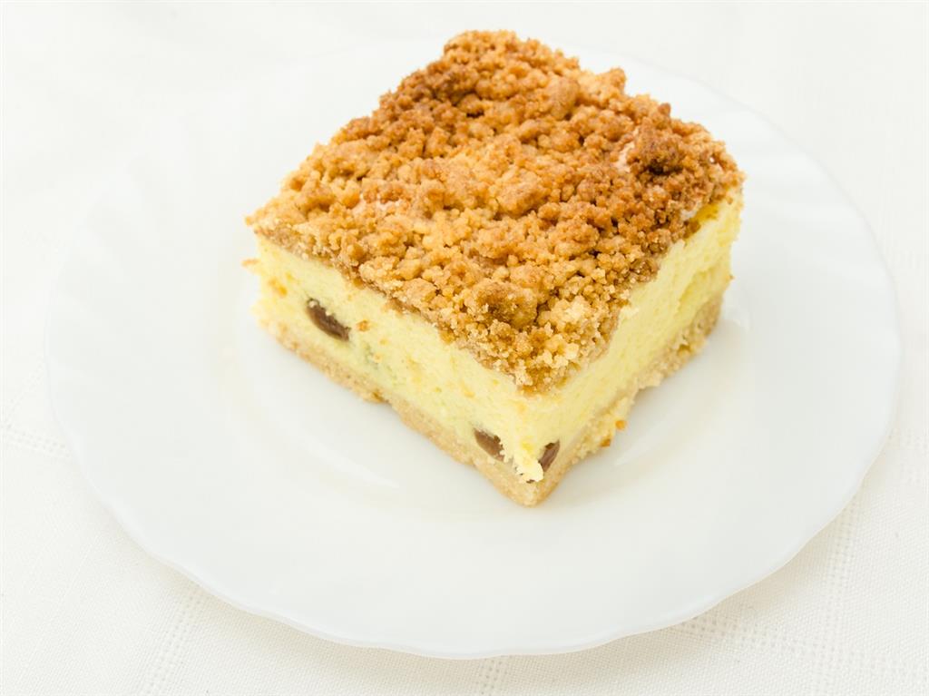 Ciasto zagnieść, podzielić na 3 części, 2 części ułożyć na blaszce, trzecią zostawić na posypkę. Ser zagnieść, dodać 4 ubite na śnieg białka, wyłożyć na ciasto. Pozostałe 4 białka ubić na pianę z 10 dkg cukru i ułożyć na serze; na pianę ułożyć posypki z trzeciej części ciasta.
