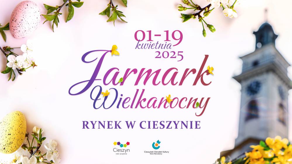 Cieszyński Ośrodek Kultury "Dom Narodowy" i miasto Cieszyn zapraszają na Jarmark Wielkanocny! Świąteczne zakupy na cieszyńskim rynku będzie można zrobić od 1 do 19 kwietnia 2025 r. codziennie w godzinach od 10:00 do 18:00. Codziennie będą czekać na nas stoiska z rękodziełem, ozdobami świątecznymi, dekoracjami, stroikami, kwiatami i kompozycjami florystycznymi, palmami, miodami, świecami, obrusami. figurkami z gipsu, serami i wiele innych atrakcji!