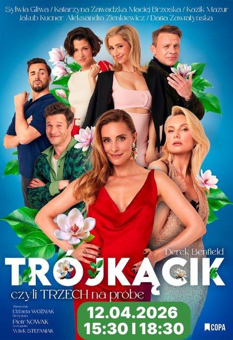 Zapraszamy do Teatr im. Adama Mickiewicza w Cieszynie na spektakl "Trójkącik, czyli trzech na próbę", który odbędzie się 12 kwietnia 2026 r.