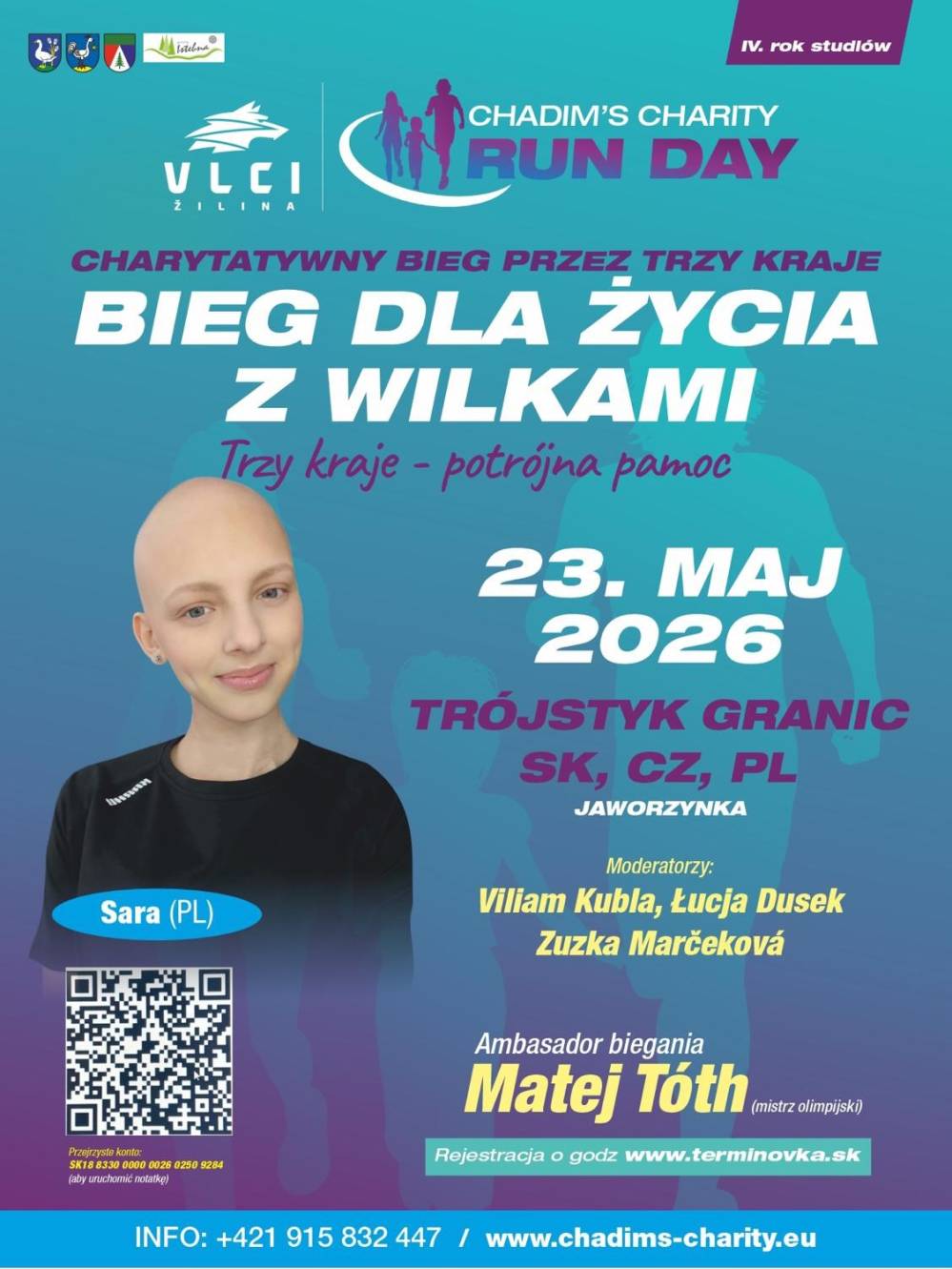 Charytatywny bieg przez trzy kraje odbędzie się 23 maja 2026. Wzorem lat ubiegłych w ramach akcji zbierane będą fundusze dla chorych dzieci. Z każdego kraju wspierane jest jedno potrzebujące pomocy dziecko. Tym razem ze strony Polski twarzą Biegu z Wilkami dla Życia została młoda dziewczyna o imieniu Sara, która niedawno obchodziła 17. urodziny. Sara od 2022 roku choruje na raka kości Ewinga w czwartym stadium z przerzutami do płuc. Do tej pory przeszła 167 wlewów chemioterapii i trudną operację, podczas której wszczepiono jej dużą endoprotezę od uda do piszczeli, przeszczep szpiku kostnego i radioterapię. To bardzo długie i trudne leczenie.