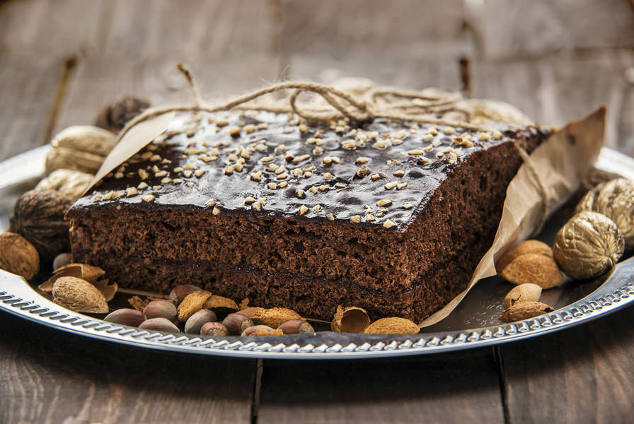 Ciemnobrązowe ciasto; na przekroju pulchne i delikatne.