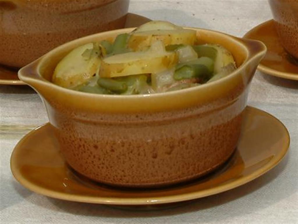 Potrawę zapieka się w małych glinianych miseczkach lub w większym naczyniu.