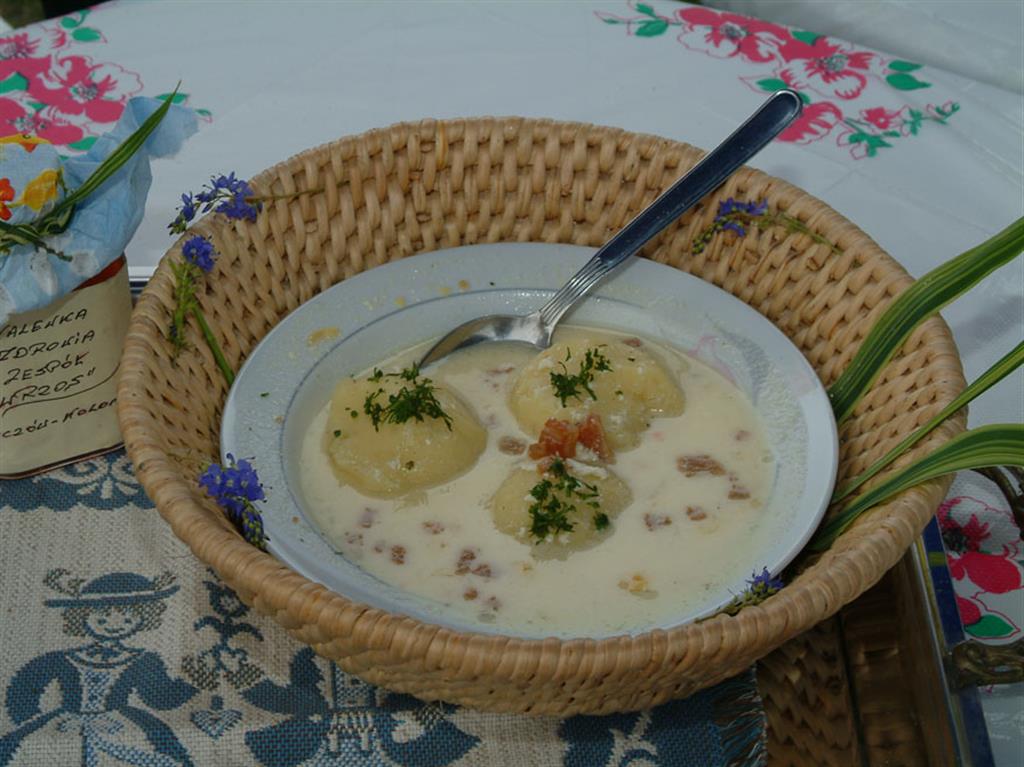 W opracowaniu Stanisława Ciszewskiego Lud rolniczo-górniczy okolic Sławkowa w powiecie Olkuskim (1887 r., s. 196) czytamy: Potrawy zaś odmieniają według następującego jadłospisu. Śniadanie: (…) Polewka z kwaśnego mleka lub serwatki z ziemniakami. Archiwum Muzeum w Sławkowie zawiera opracowanie dra Zbigniewa Matuszczyka XIX-wieczny spis potraw mieszkańców Sławkowa. Potrawy te serwowano również w sławkowskiej austerii, w której polewka jest wyszczególniona jako danie śniadaniowe. Również i dzisiaj można w niej skosztować polewkę na maślance z ziemniakami. Polewka cieszy się dużym powodzeniem wśród klientów jako danie regionalne.