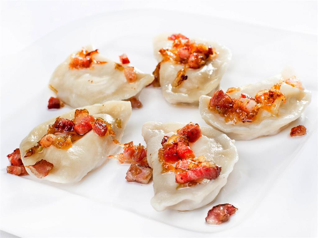 Wyczuwalny smak ciasta makaronowego i tartych ziemniaków z okrasą z cebulki.
