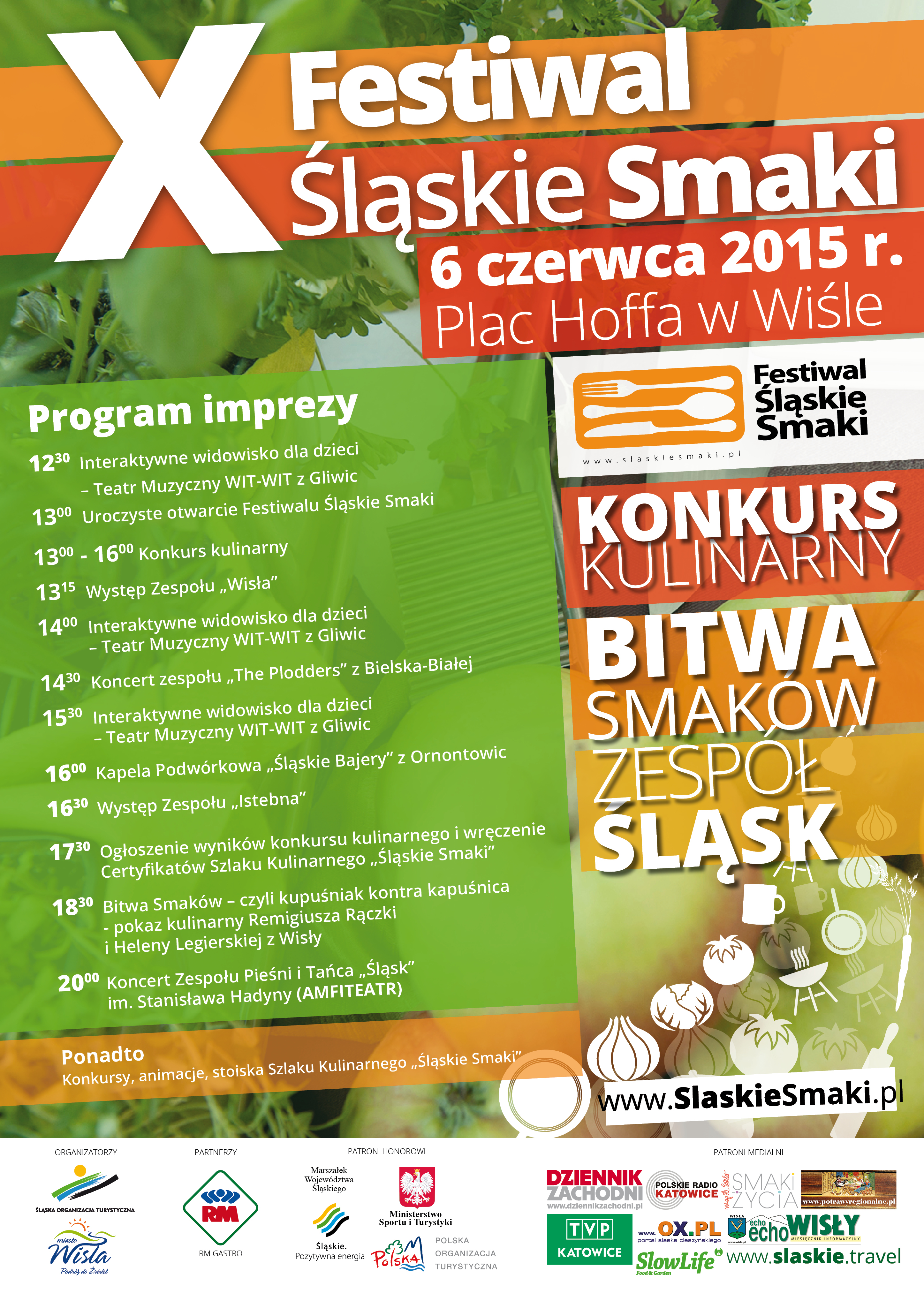 Organizatorami X Festiwalu „Śląskie Smaki” byli: Śląska Organizacja Turystyczna oraz Miasto Wisła. Więcej informacji o imprezie i Szlaku Kulinarnym na www.slaskiesmaki.pl.