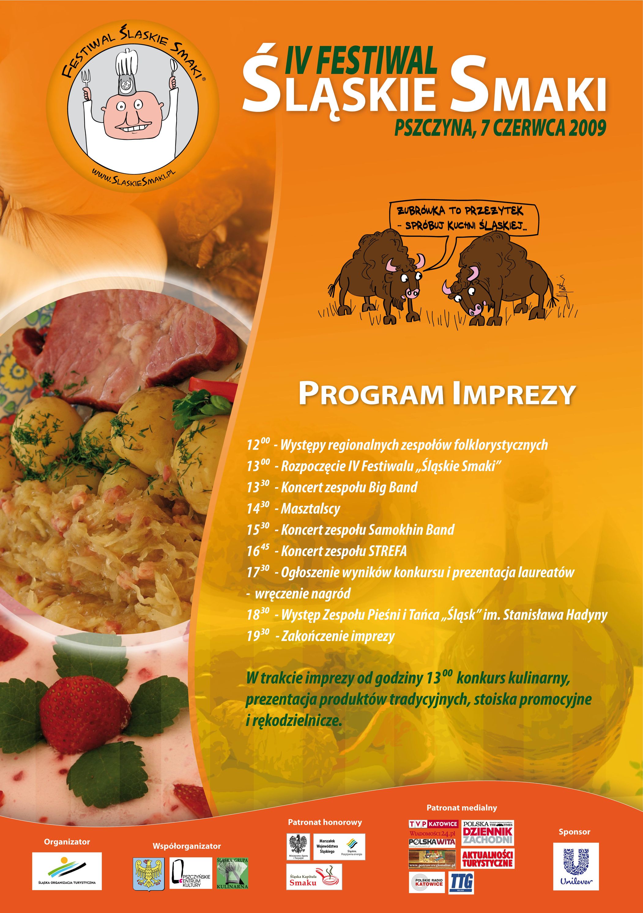 Tegoroczna edycja Festiwalu odbyła się w Parku Zamkowym w Pszczynie, miejscowości, która jest prawdziwą turystyczną perełką naszego regionu. To tu rywalizowały 23 drużyny o zaszczytny tytuł Eksperta Śląskich Smaków i nagrodę Złotego Durszlaka. Tradycyjnie gwiazdą imprezy był Zespół Pieśni i Tańca "Śląsk" im. Stanisława Hadyny.