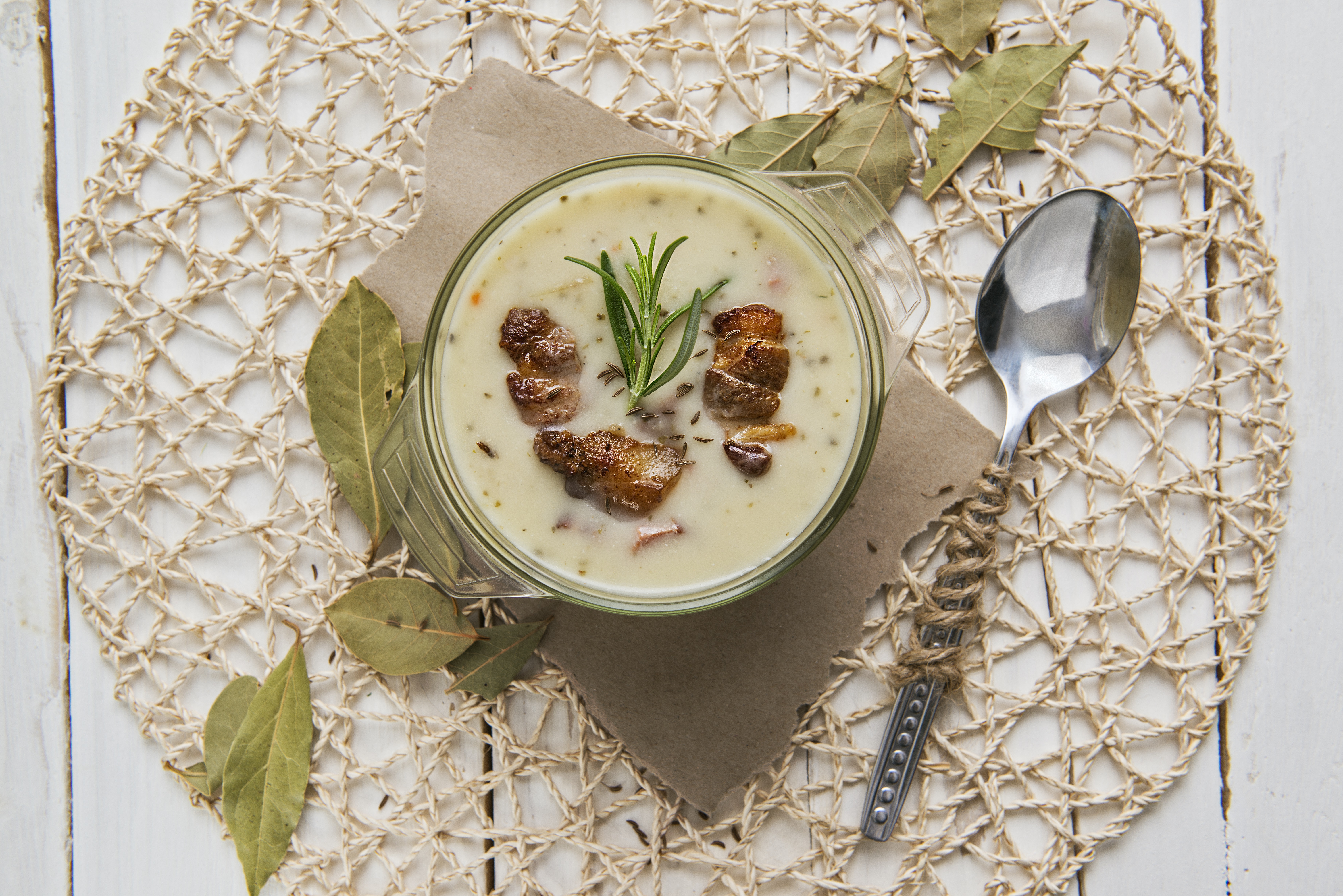 Juszka (zupa z ziemniaków zasypana kaszą jęczmienną)