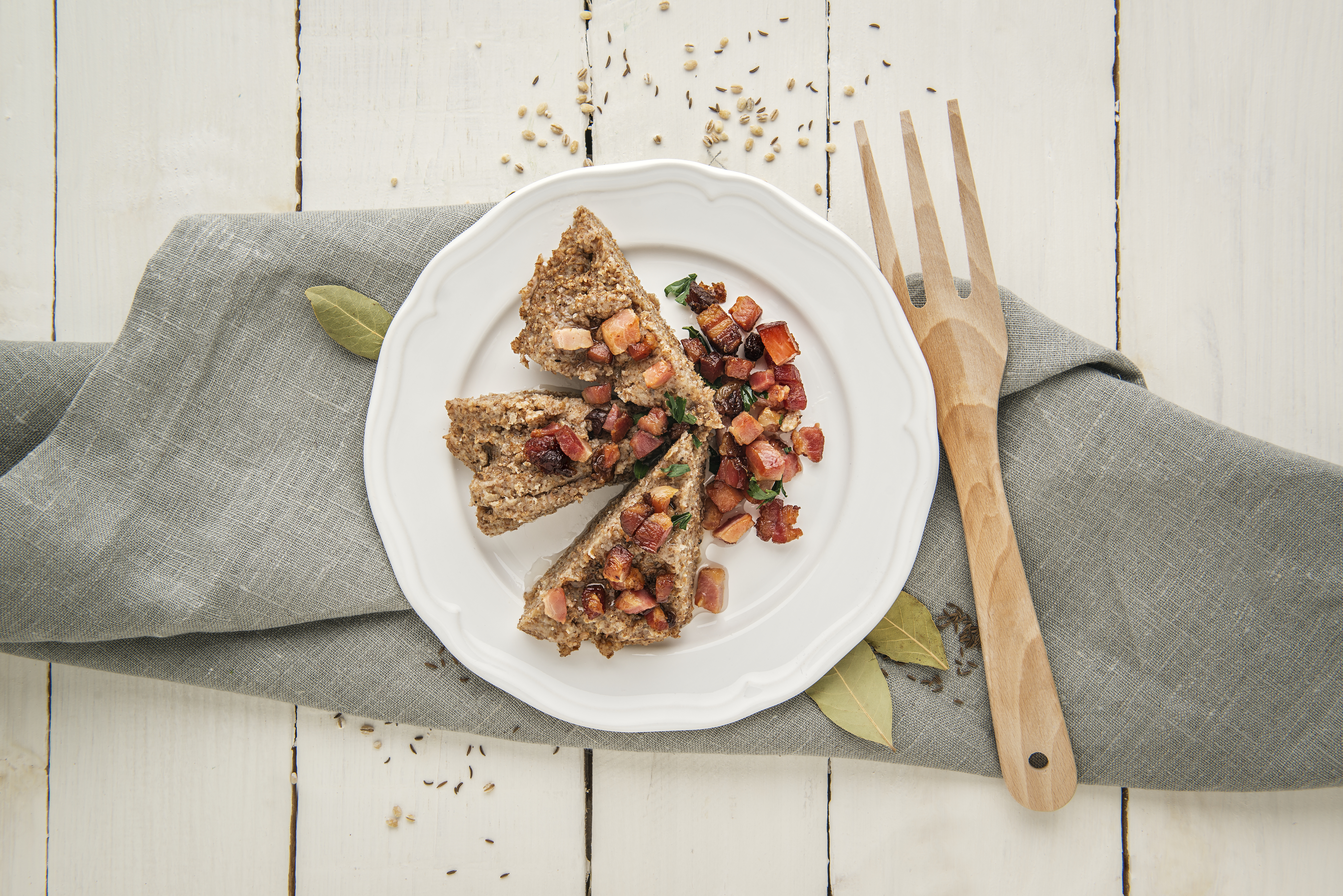 Ważne miejsce w jadłospisie zajmowały też kasze, będące wówczas również składnikiem pożywienia świątecznego. Kaszę dodawano do zup, do fasoli czerwonej, do jelit czy żebroczki, która była tylko potrawą górali wiślańskich.